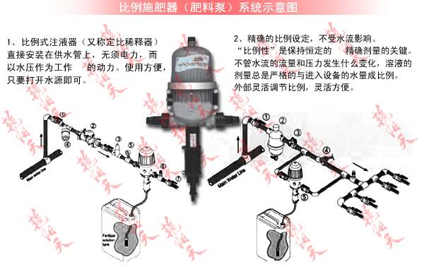 配合灌溉的自动与比例施肥系统在现代设施农业中也很常用,如自动比例注肥泵,自动移动式喷灌机等。