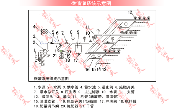 微喷灌系统指灌水器以小水量喷洒水浇灌的灌溉系统。微喷是一般用于育苗温室的装备,作用兼顾夏季降温、加湿和灌溉。满足育苗较高的温度和湿度环境要求。同时,也有灌溉的作用。