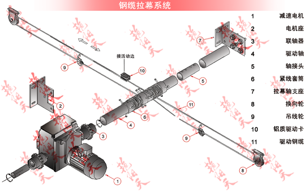 四.不论哪种驱动,都还可以有以下几种牵引幕布的不同方式: